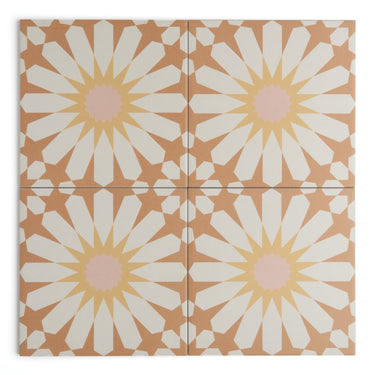 Give your home a healthy dose of vitamin D with our stunning Tropez patterned tiles. Design-led and distinctive, the starburst motif and warming tones will help you style an interior that always feels red hot.